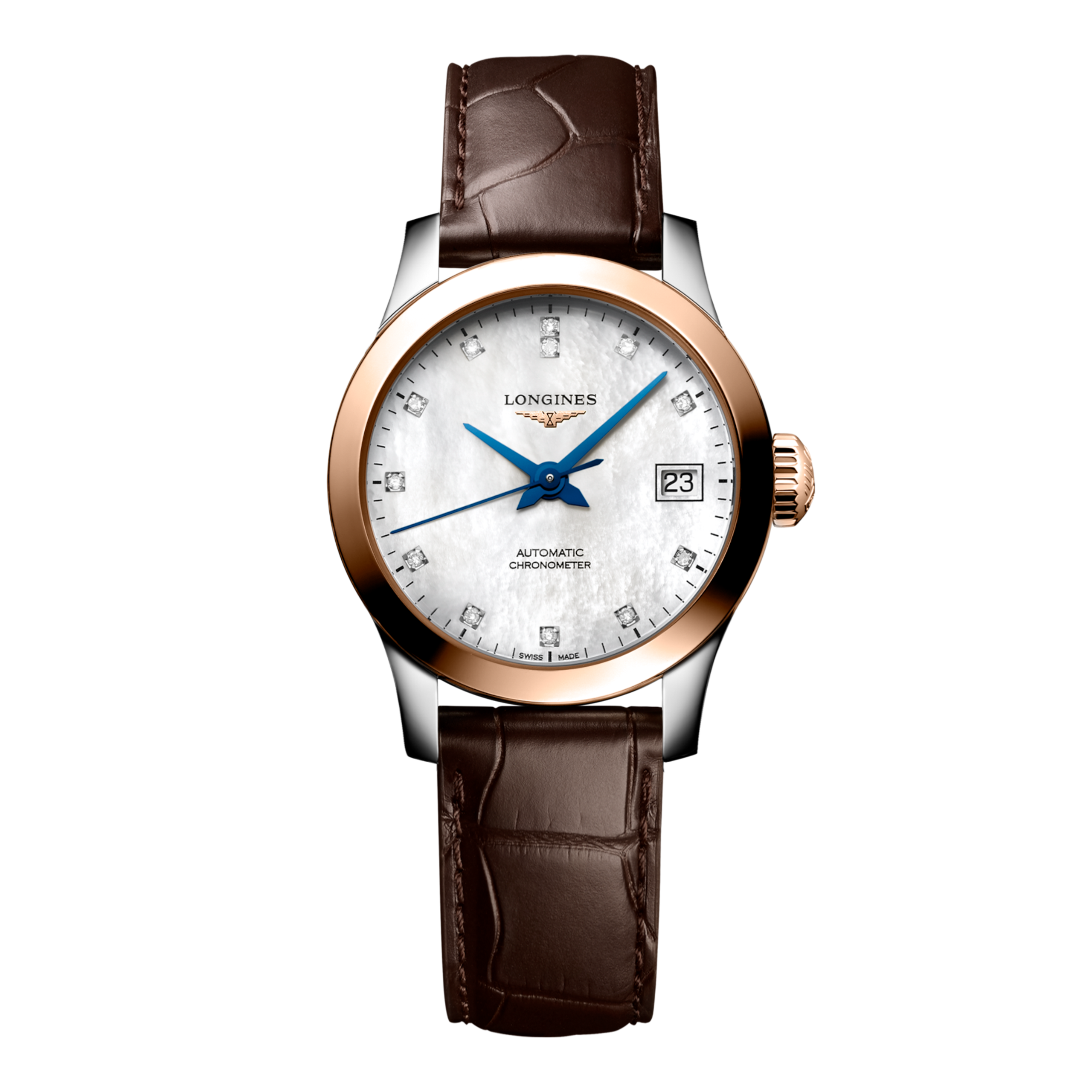 Die Record Kollektion von Longines ist ein Beweis für das unermüdliche Engagement der Marke für Präzision und Eleganz in der Uhrmacherei. Diese sorgfältig gefertigten Automatikuhren mit einer Mischung aus Tradition und Innovation sind mit einer Unruhspirale aus Silikon ausgestattet. Ihr Uhrwerk ist von der COSC als Chronometer zertifiziert.
