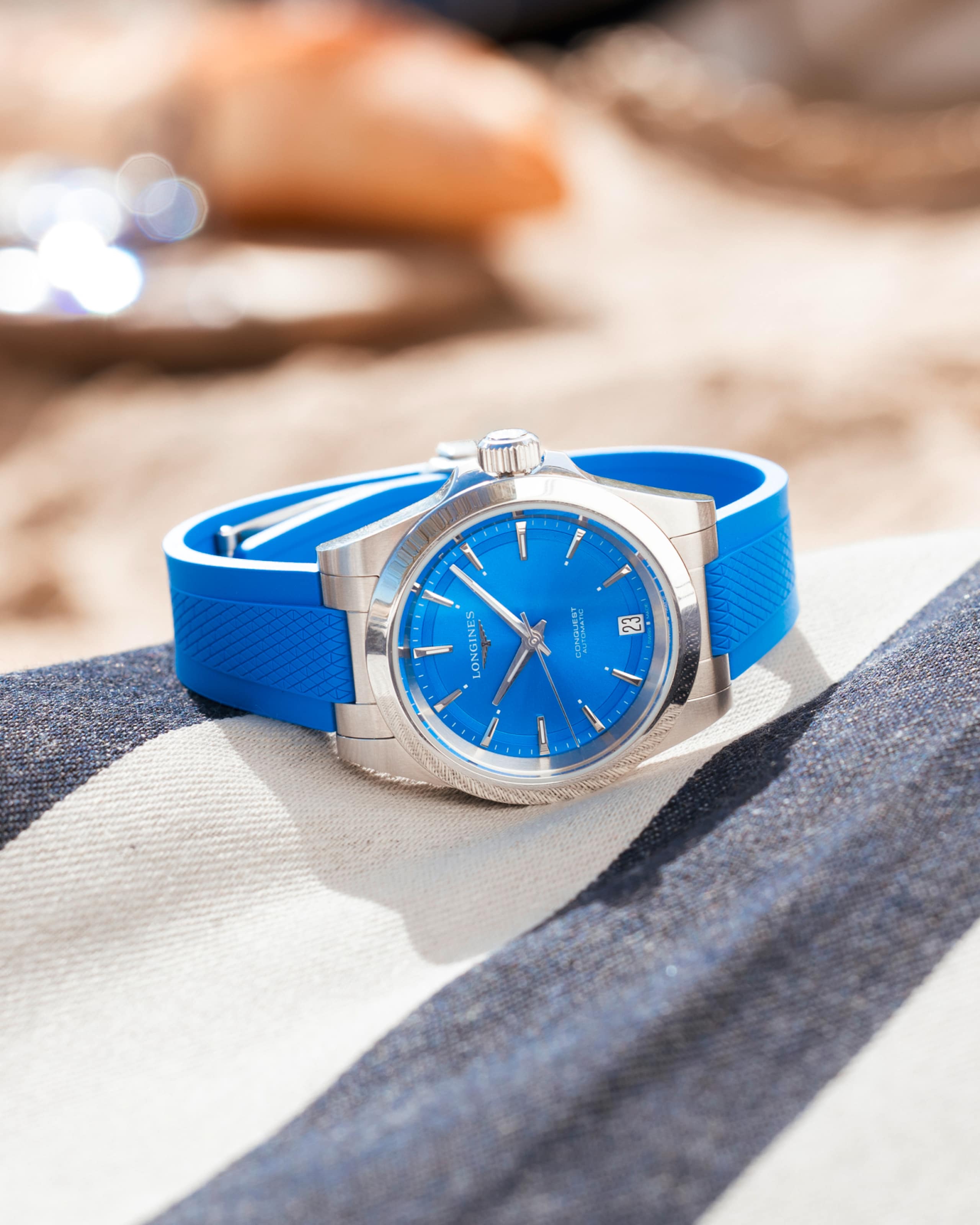 Die Insel Sylt ist nicht nur für ihre traumhafte Landschaft, sondern auch für ihr einmaliges Lebensgefühl bekannt. Longines hat sich von diesem „Insel-Feeling“ anstecken lassen und reist bereits zum vierten Mal im Sommer nach Kampen. Vom 15. Juli bis 15. August 2025 erobert Longines mit der Conquest Sylt Edition Deutschlands beliebteste Insel! Mit einer aufwendigen Pop-Up-Installation im Stil klassischer Umkleidehäuschen lädt der Schweizer Uhrenhersteller dazu ein, seine Geschichte und Kollektionen zu entdecken – und ein paar unvergessliche LONGINES U(h)rlaubsmomente zu genießen. Mit im Gepäck das außergewöhnliche Duo der Conquest Sylt Edition 2025 gibt es in der Größe 34 mm und 41 mm. Die beiden Modelle sind auf je 200 Stück reduziert. Sie sind auf Sylt, in der Longines Online-Boutique sowie im ausgewählten Fachhandel deutschlandweit erhältlich.