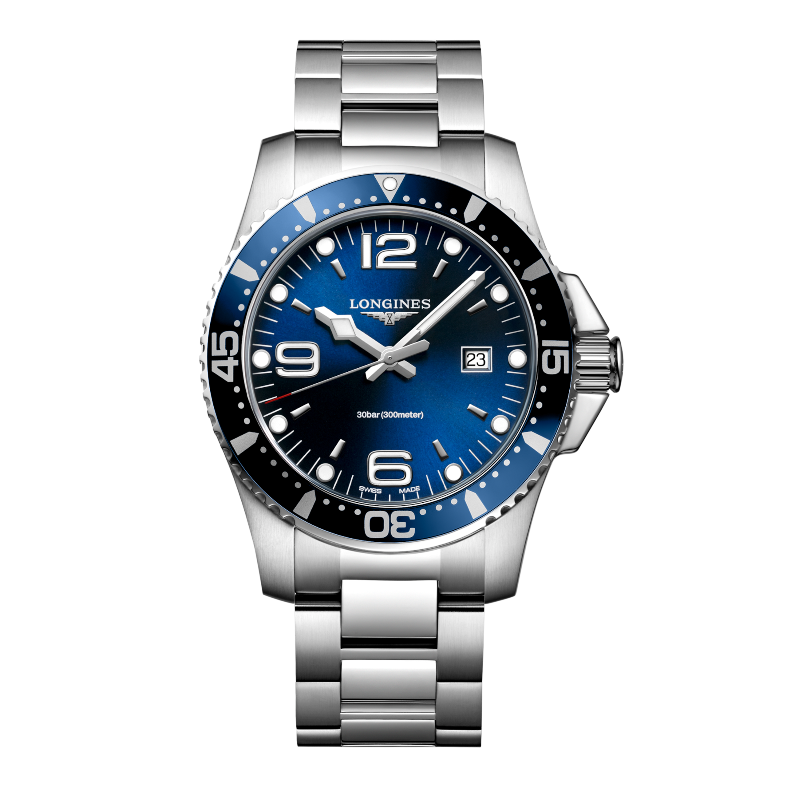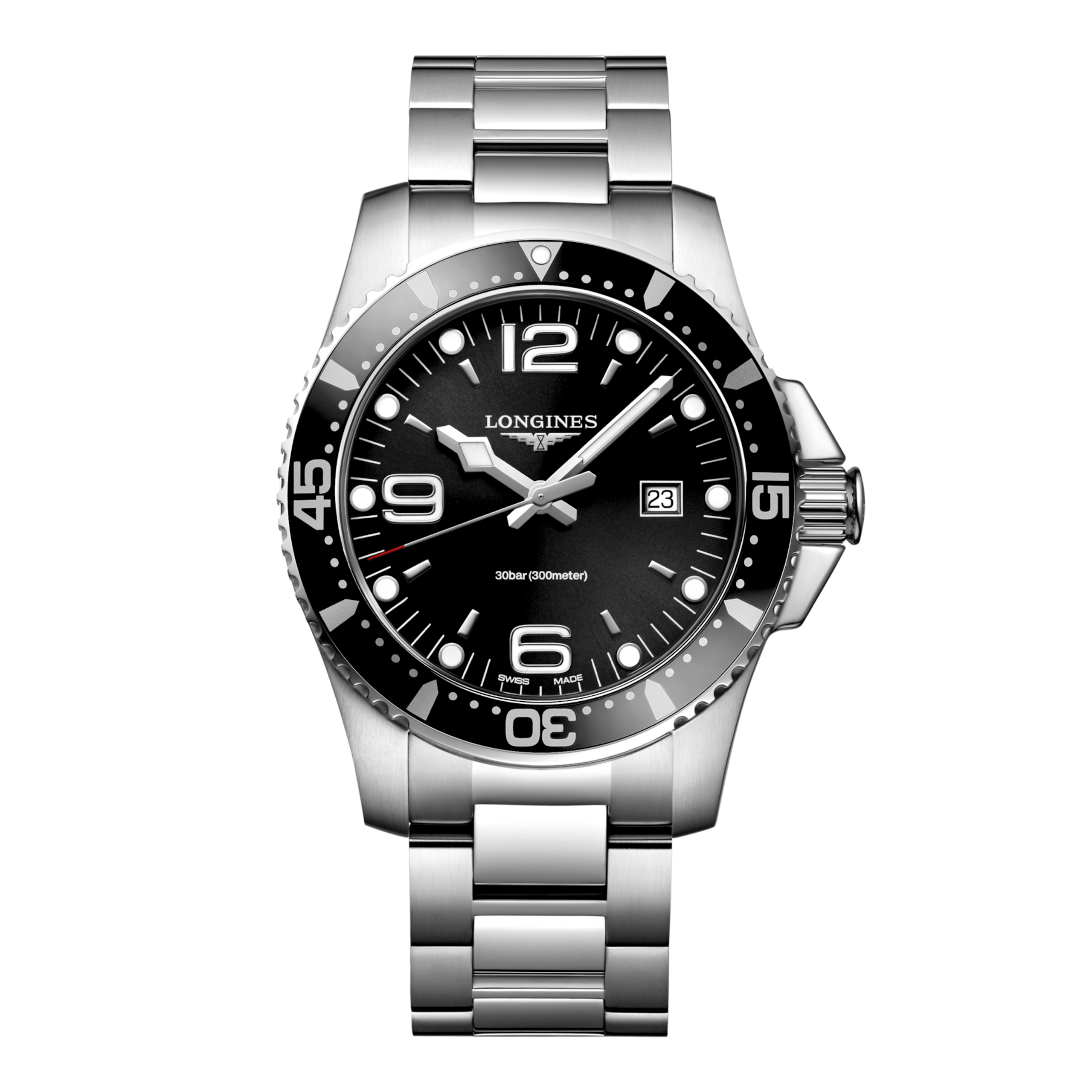 Inspired by the world of water sports, the HydroConquest collection stands out with its daring design. Water-resistant up to 30 bar (300 m) with a unidirectional rotating bezel and screw-down crown and case back, it guarantees exceptional reliability at all times.