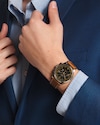 Bezel with tachymeter scale, water-resistant to 3 bar, scratch-resistant sapphire crystal, with several layers of anti-reflective coating on both sides.