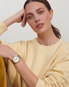 White mother-of-pearl dial with Stainless steel and 18 karat pink gold cap 200 strap