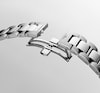 Brazalete de pulsera de acero inoxidable, con triple cierre desplegable de seguridad y mecanismo de apertura mediante pulsador.