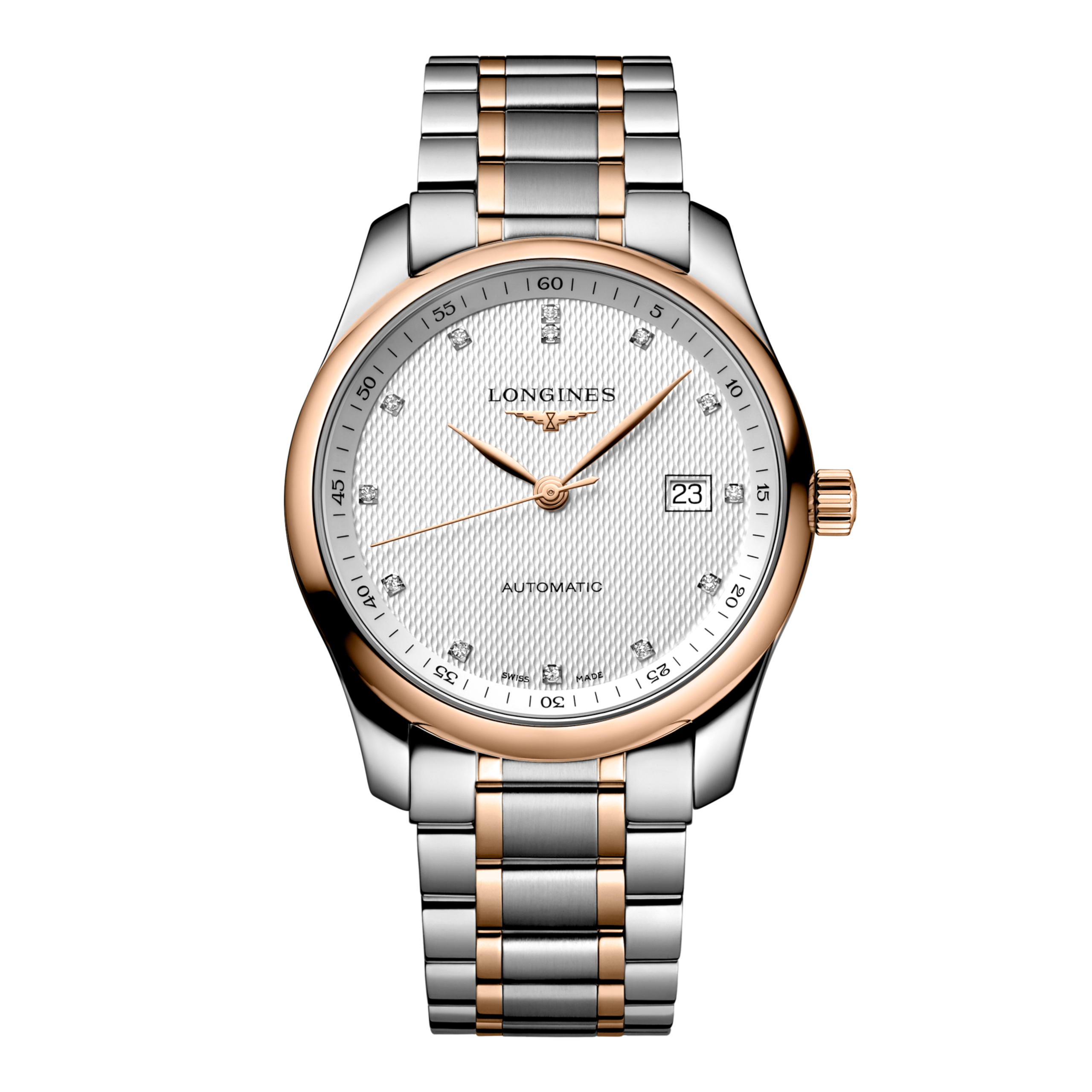 LONGINES MASTER COLLECTION, L2.793.5.77.7, montre automatique, Ø 40.00 mm, acier et coiffe en or rose 18 carats 200 microns.