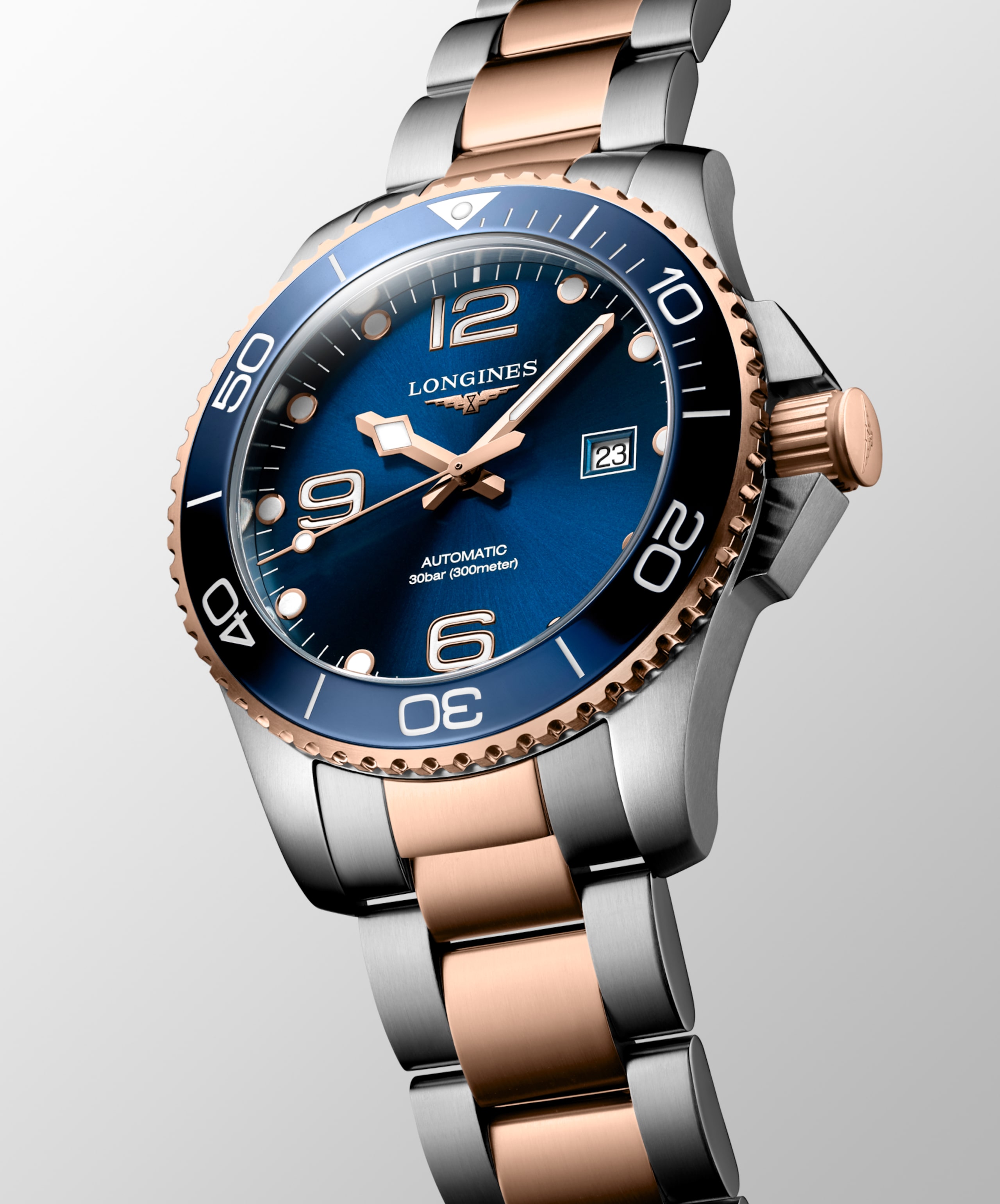 Ispirata al mondo degli sport acquatici, la collezione HydroConquest si distingue per il suo design audace. Impermeabile fino a 30 bar (300 m), con lunetta girevole unidirezionale, corona e fondello a vite, garantisce un’affidabilità eccezionale in ogni momento.