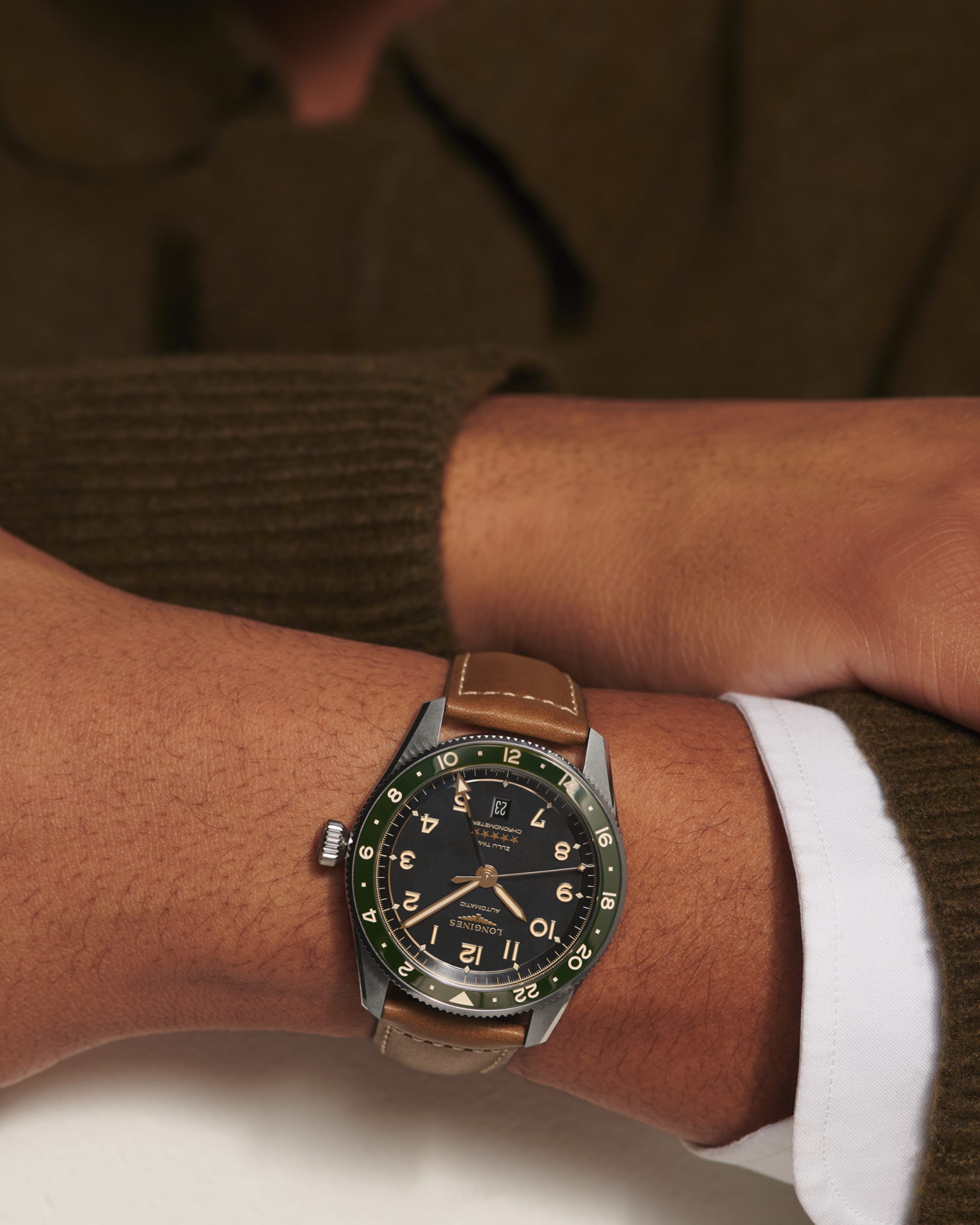 Il Longines Spirit Zulu Time simboleggia la maestria centenaria del marchio negli orologi con più fusi orari. Le sue origini e il suo nome derivano dal primo orologio da polso Longines con due fusi orari, realizzato nel 1925, che presentava la bandiera Zulu sul quadrante (dove Zulu si riferisce alla lettera “Z” che indica il tempo universale per gli aviatori). Esteticamente, il Longines Spirit Zulu Time si distingue per l’esecuzione meticolosa e la particolare cura dei dettagli. Presenta una lunetta girevole bidirezionale con inserto in ceramica. Ogni modello è alimentato da un esclusivo calibro Longines, dotato di un bilanciere-spirale in silicio, resistente ai campi magnetici e certificato come cronometro COSC.